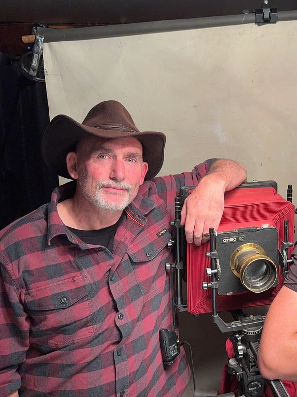 When I moved to Montana in 2021, I made a personal vow that I would build my own house, then as soon as my house was built, I'd jump into the rest of my life as a full-time self-employed photographer. I had discovered tintype photography in 2018, and knew right away that THIS was the medium I wanted to pursue. I love digital and film photography, don't get me wrong...but TINTYPE was a totally different photographic animal! I was enthralled with the process, the intentionality of it, the necessity to slow down, the richness of the blacks, creaminess of the grays and whites, ALL of it. After my house was built in late 2024, I threw myself passionately into starting my tintype business. When I had the rare opportunity to study under the guru of modern day tintype, John Coffer, I jumped at it. I feel blessed to have spent that time studying tintype photography under him at his farm in upstate New York. (Image on left @ John Coffer's)